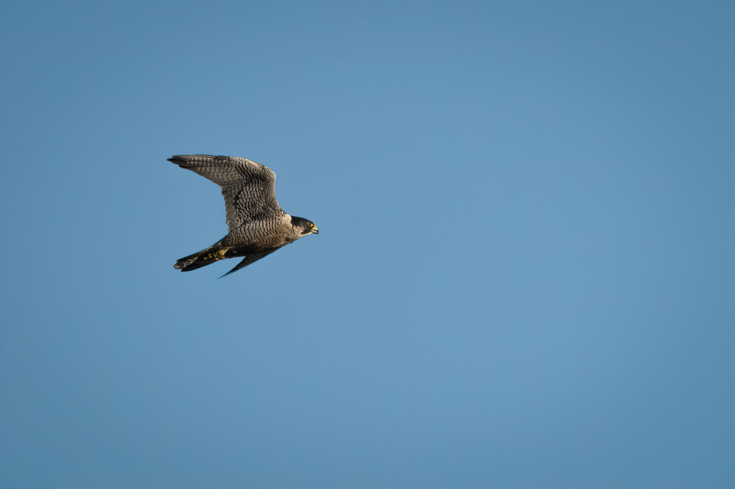 The Peregrine Falcon, also known as the fastest bird in the world, is a magnificent creature with a striking appearance. Its dark bluish-gray back, black head, and white throat are recognizable features of this bird. Their eyes are large and black, giving them a determined look.